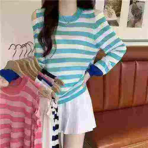 小心机露肩减龄甜美宽松条纹针织衫,数量500件左右,单款多色,均码,独立包装,分货➕1随机配