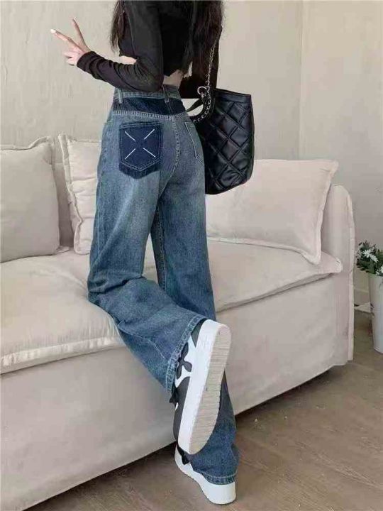 撞色口袋高腰阔腿显瘦牛仔裤女,图片款两个整款1300件...