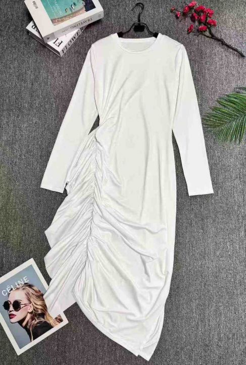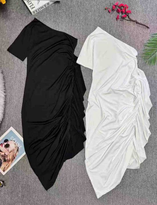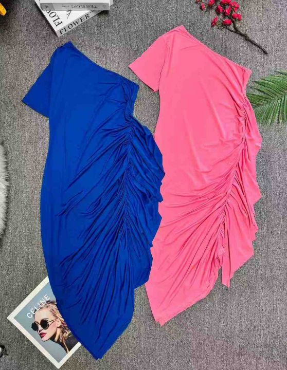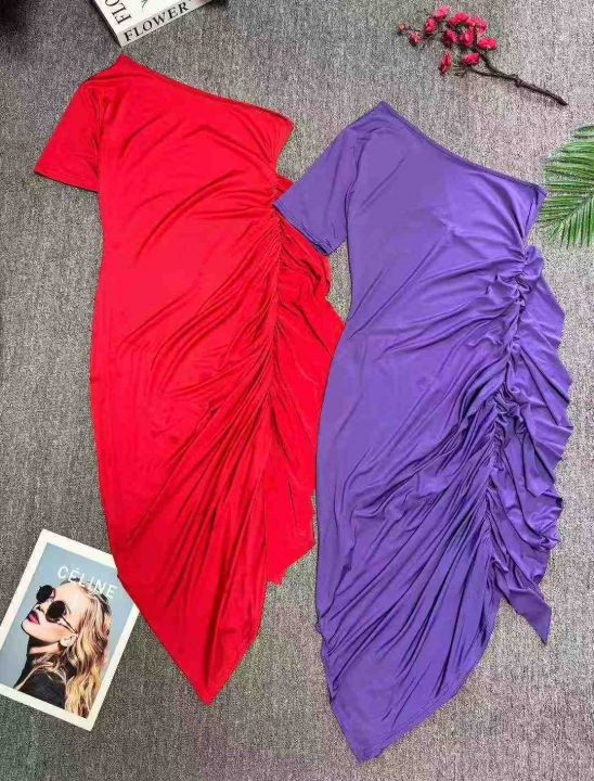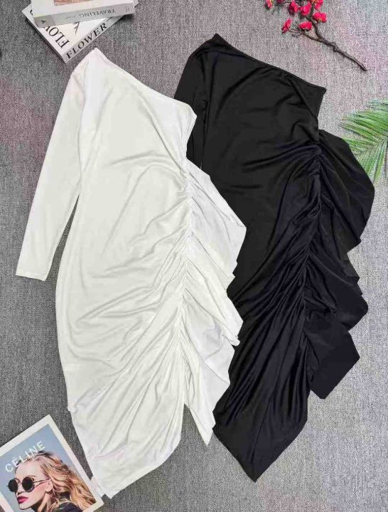 欧美不规则褶皱长袖/单肩长袖/单肩短袖连衣裙,图片款多色,数量:242件,码数:S-4XL,品质好,拉链式独立包装。