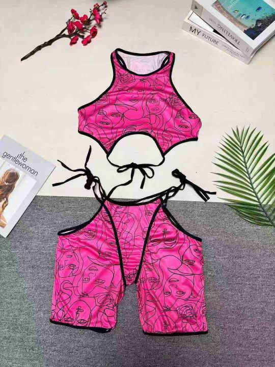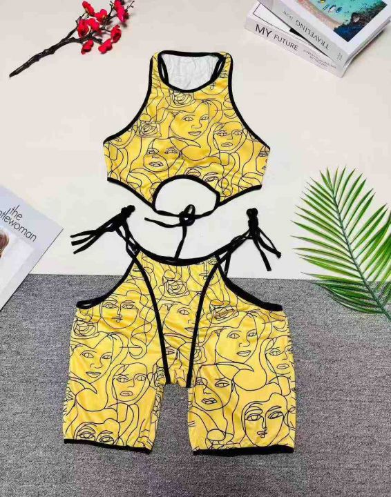 欧美女印花套装系带短裤套装休闲运动装 ,整款四色,数量:183套,码数:S-2XL,品质好,拉链式独立包装。