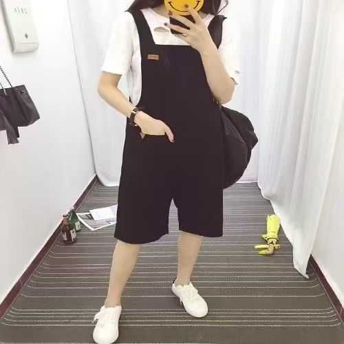 上新全清:6.8一件简约纯色宽松遮肉显瘦背带短裤,[爱...