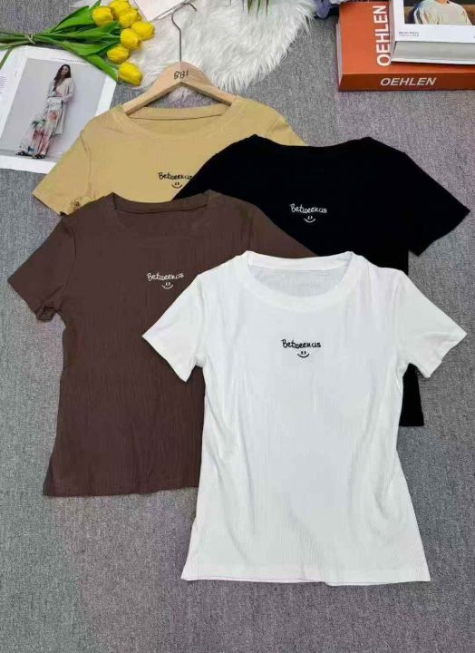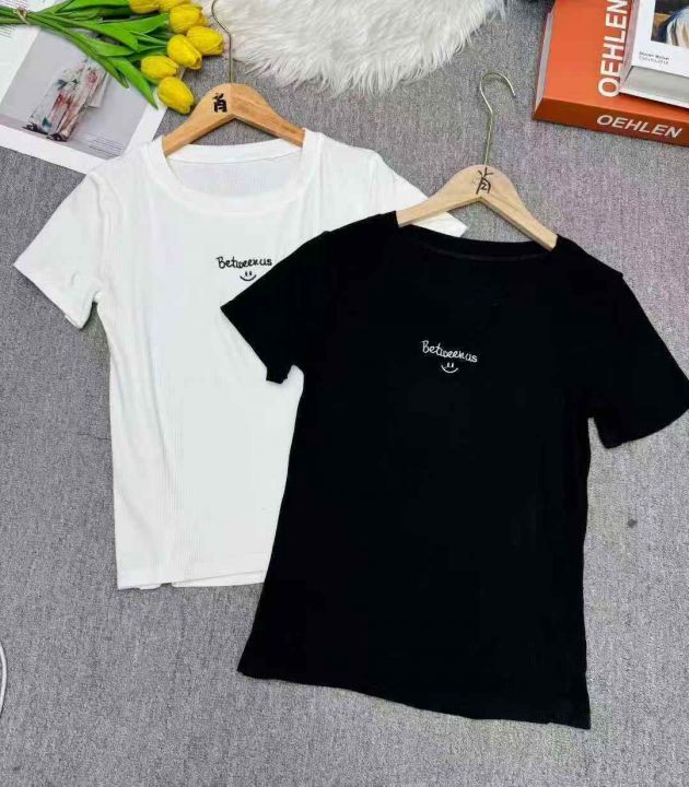 螺纹短袖t恤女夏时尚刺绣百搭修身辣妹上衣,独立包装,均码,整款四色,数量200件,大货黑白为主,高弹,货号114#14