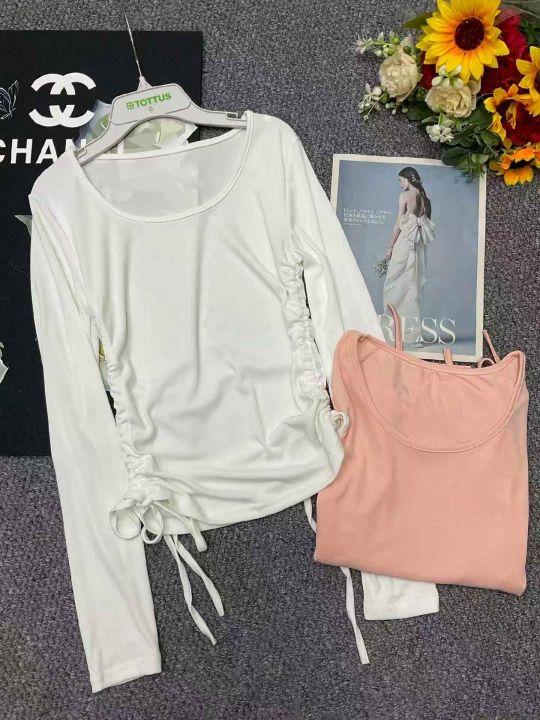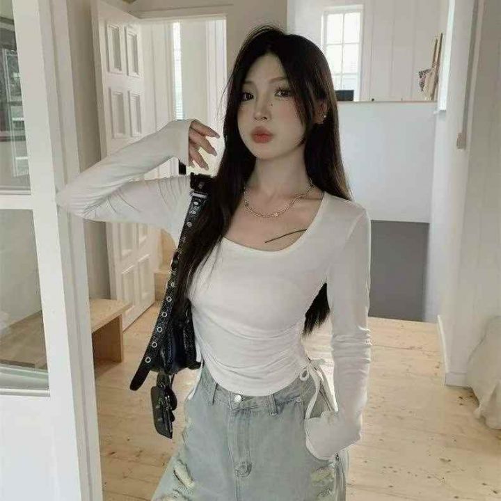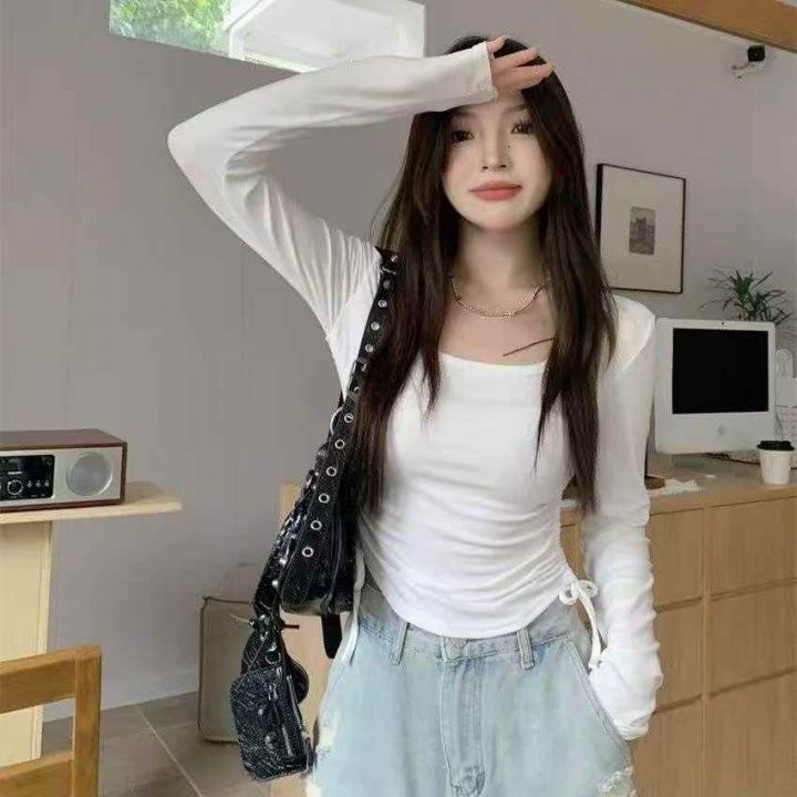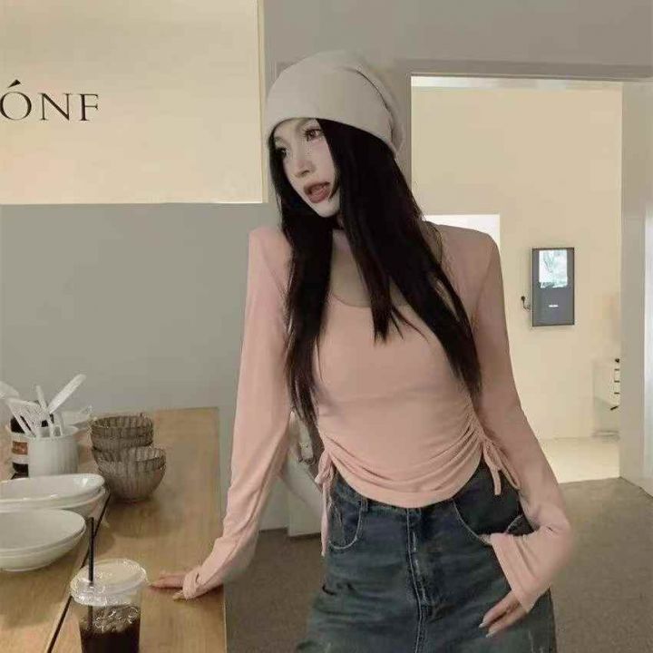 捡漏款,春季新款韩系掐腰褶皱系带设计感冰丝弹力修身显瘦长袖上衣,独立包装,码数S--XL码,50件左右,全清4.9元超低价秒杀!