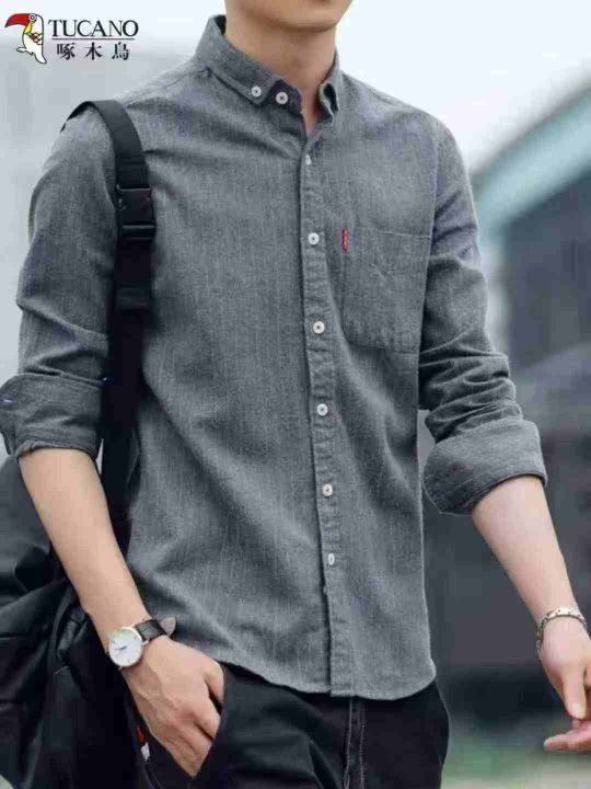 衬衫男长袖新款年条纹男士衬衣秋季休闲潮流百搭男装,...