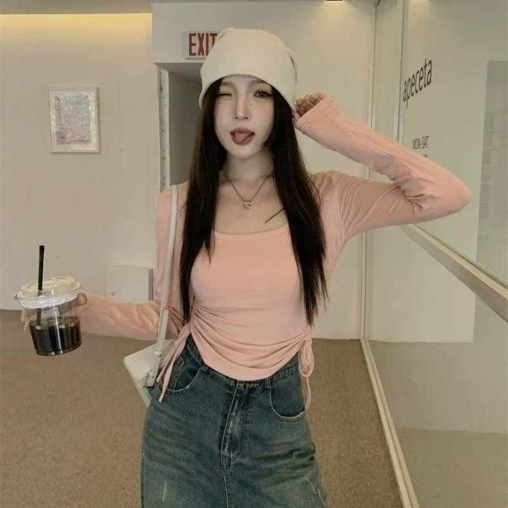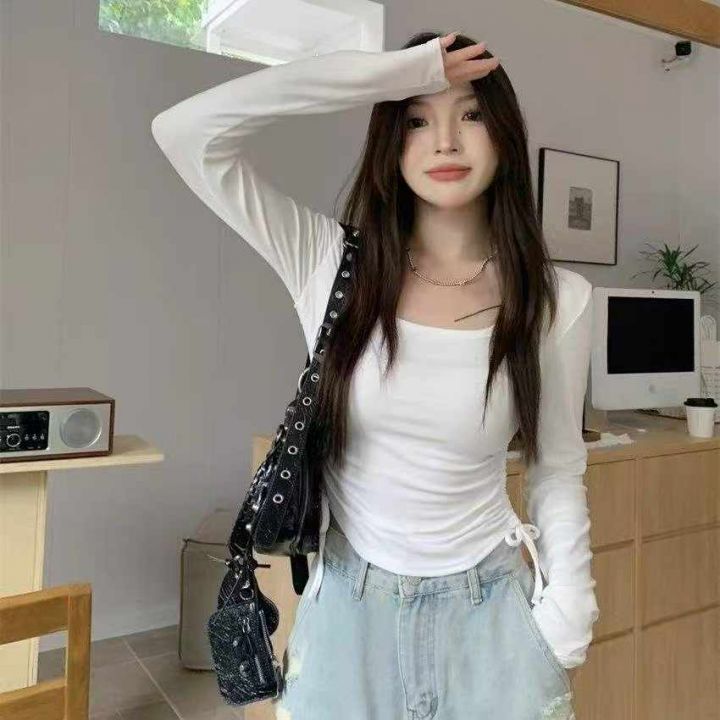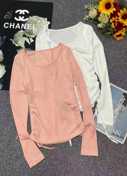 捡漏款,春季新款韩系掐腰褶皱系带设计感冰丝弹力修身显瘦长袖上衣,独立包装,码数S--XL码,50件左右,全清4.9元超低价秒杀!