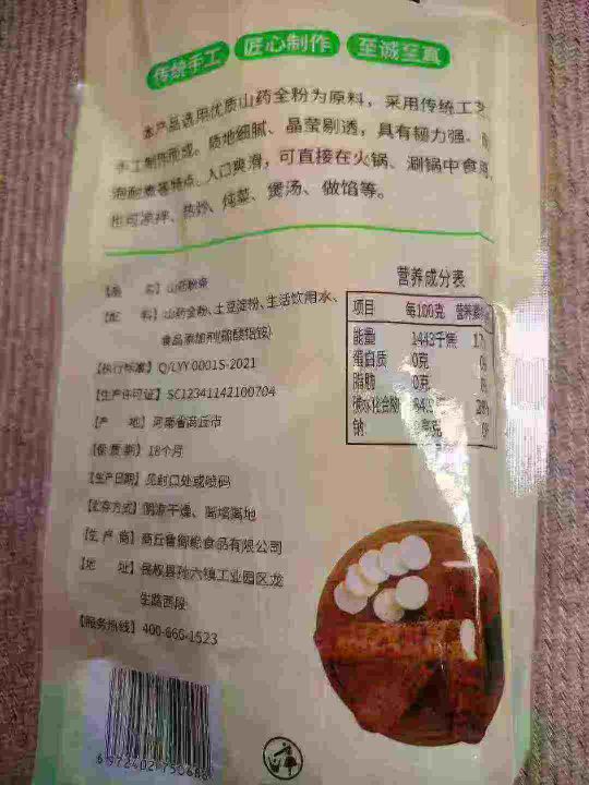 非常好吃的一款粉条,还剩400袋,全打包6毛一袋,送礼,自家用更合适!谁拿谁合适,世纪家家福超市下架山药粉条,还剩8000袋左右,一袋100克,保质期到2026年5月,这个配料表就是山药全粉和土豆淀粉,绝对是高品质,特别耐煮,原价超市卖3块多钱一袋,一分钱一分货!。 货号:29195