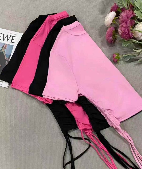 1000多件美式正肩抽绳甜美辣妹设计感小众减龄修身短款体恤,尺码:XL~4XL,面料柔软有弹力,后领包边包条,零次品,全清捡漏价5.8元,分
