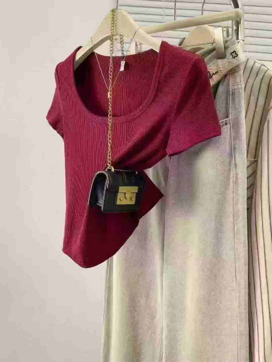 辣妹短袖T恤夏季正肩新款修身显瘦短款上衣,独立包装,货品干净,模特供参考,实拍为准,整款多色,弹力超大,红色只有10来件,1-4码,3400件左右,5.9清,分货加1