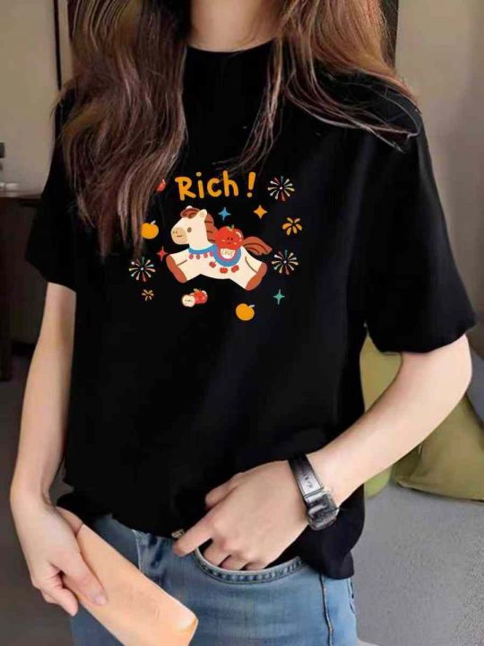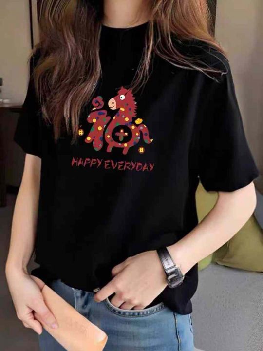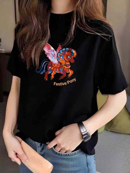 马年系列T恤☕️男女同款黑白色印花短袖T恤6600件全清...