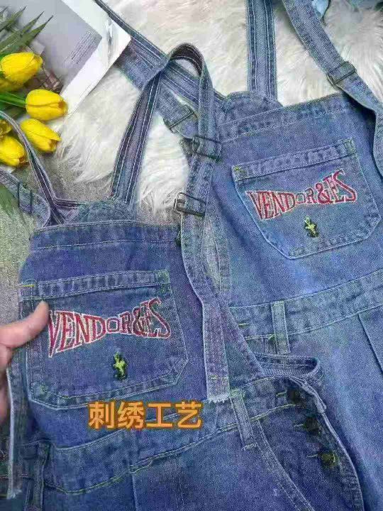 MIYA 减龄宽松牛仔背带裤女2022春夏新品阔腿显瘦梨型口袋长裤,刺绣图工艺,码数SML,版型正315条,分货加1,122#50
