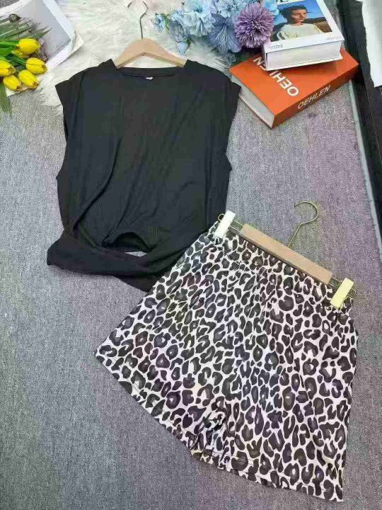 短袖运动套装女夏季新款时尚减龄洋气冰丝t恤上衣 豹纹短裤两件套 214套 2-5码 分货加¥1货号123#51