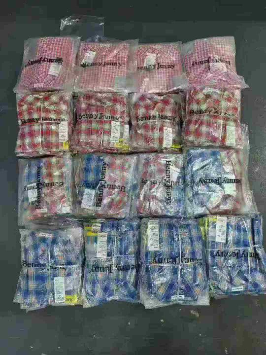 [庆祝][庆祝]382件品牌潮男孩炸街格子衬衫,图片四个款,整首齐码120-160独立包装。全清6.8
