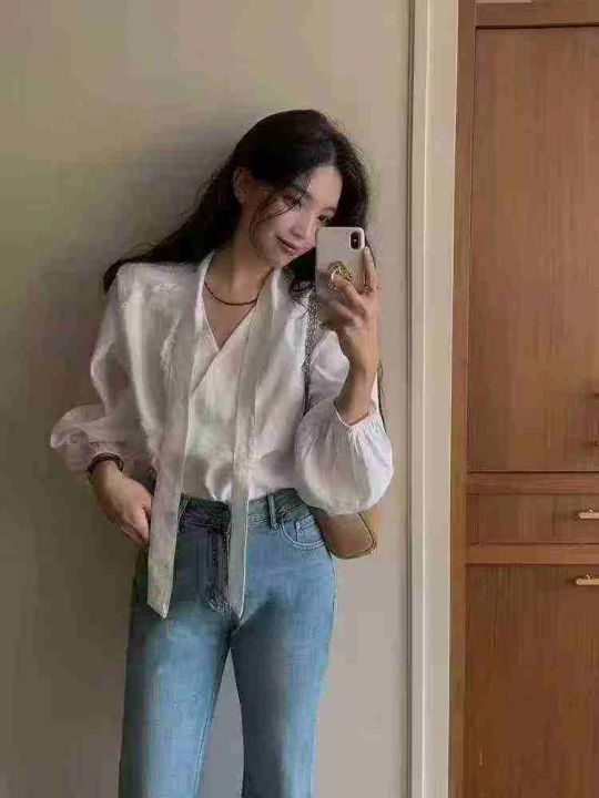 750件左右法式高级感洋气气质百搭长袖V领别致不规则绑带泡泡袖衬衫上衣,做工品质毋庸置疑,尺码S-XL,货品干净,独立包装!福利秒杀价5.8 分货6.5