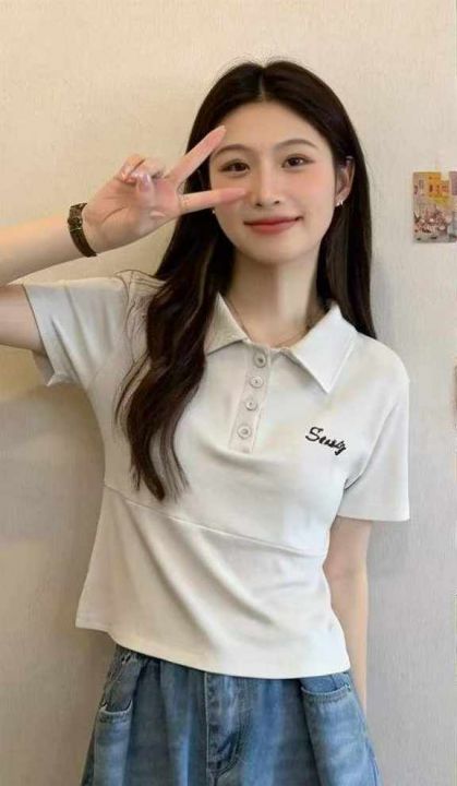 夏季新款美式学院风辣妹小众冰丝弹力修身显瘦polo领短袖T恤,独立包装,码数S-XL码,150件,全清5.8元超低价秒杀!