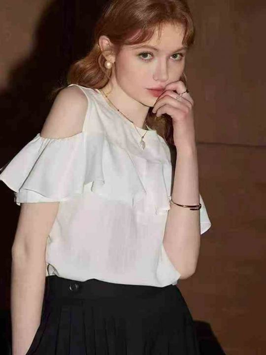 980多件亚麻法式露肩荷叶边纯色小众显瘦休闲女上衣,...