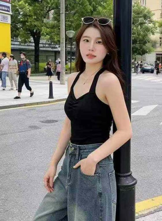 夏季新款辣妹纯欲设计感挂脖露背带胸垫外穿美背,独立...