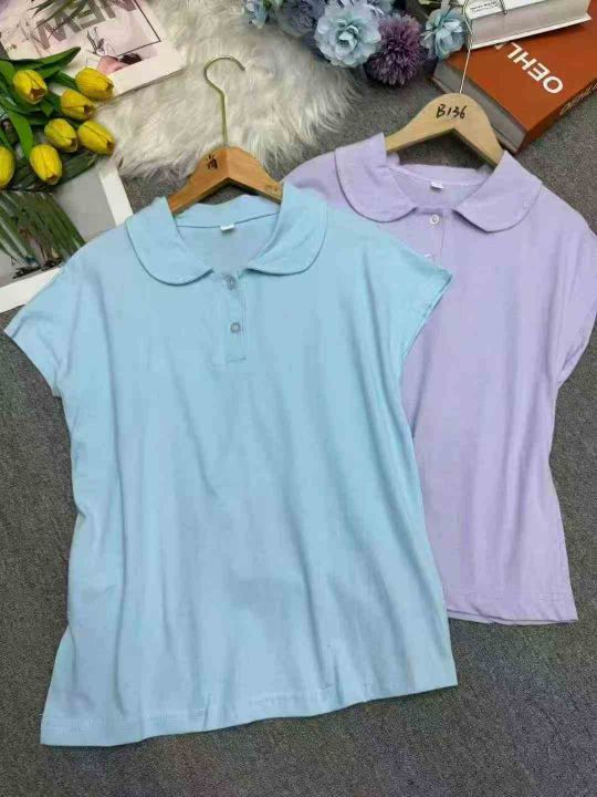 女polo娃娃领可爱减龄纯色小飞袖气质棉上衣,独立包装,码数2-4,数量272件,分货加1,货号122#48