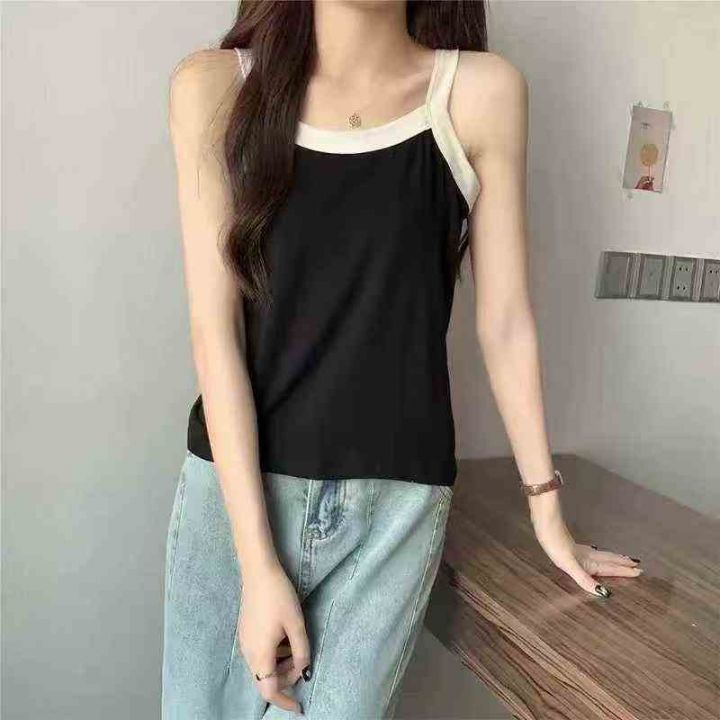 大码辣妹风无袖法式叉色吊带小衫,整款两色,高弹力,...