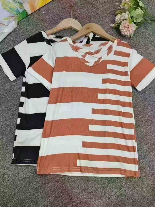 2025新款夏减龄遮肚显瘦条纹短袖女潮,整款3色,独立包装,650件左右,2-5码,4.9元清,