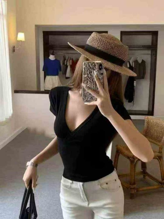 1200多件美式复古辣妹设计感V领修身显瘦短袖t恤,尺码...