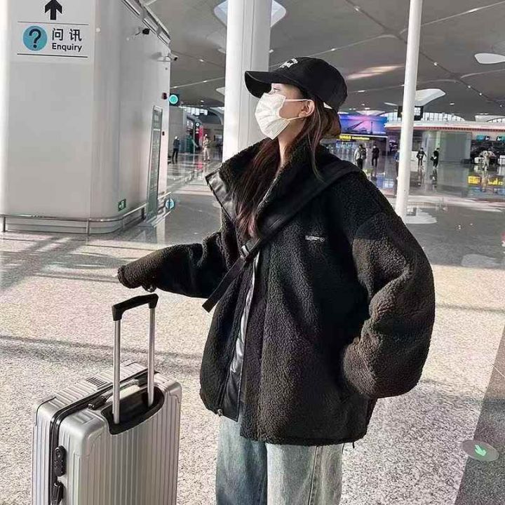 1100件,某猫在售两面穿棉服男女秋冬季ins加绒羊羔毛外套韩版潮流PU皮棉衣加厚棉袄,独立包装带吊牌,宽松版码数:S~XL码,全清29.9分货➕1