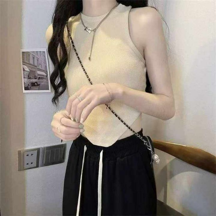 夏季新款不规则圆领弹力修身韩版百搭辣妹针织无袖背心...