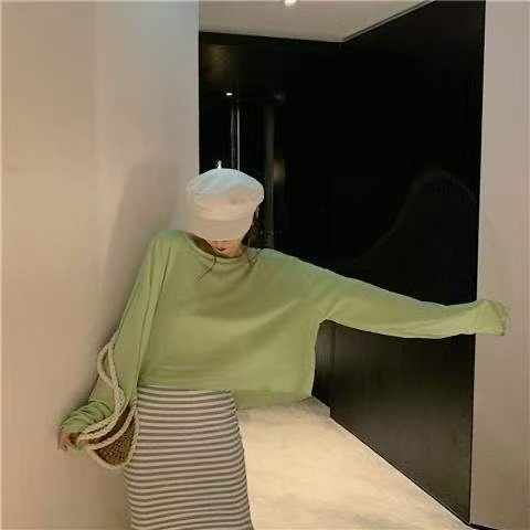 春秋新款法式方领前长后短腰间系带设计感后背露腰短款长袖针织羊毛衫,独立...