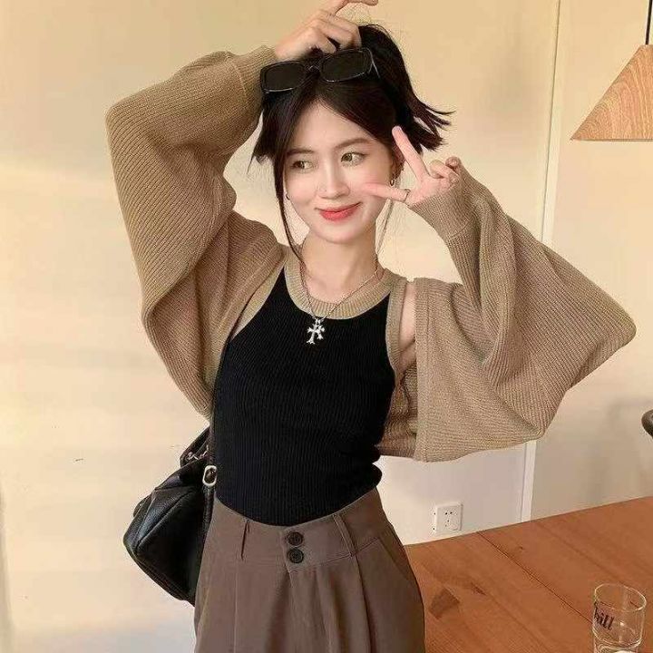 春秋季新款纯欲辣妹长袖蝙蝠针织开衫,独立包装,均码...