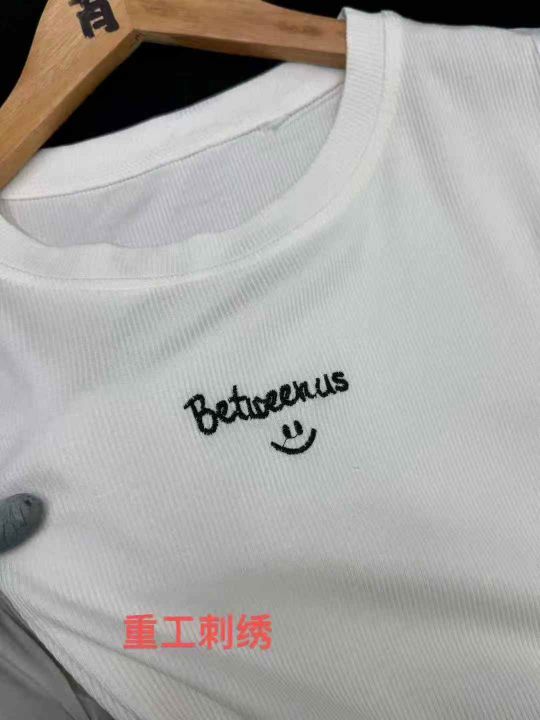 全清价6.8螺纹短袖t恤女夏时尚刺绣百搭修身辣妹上衣,...
