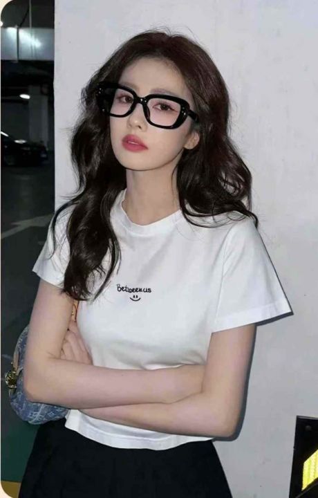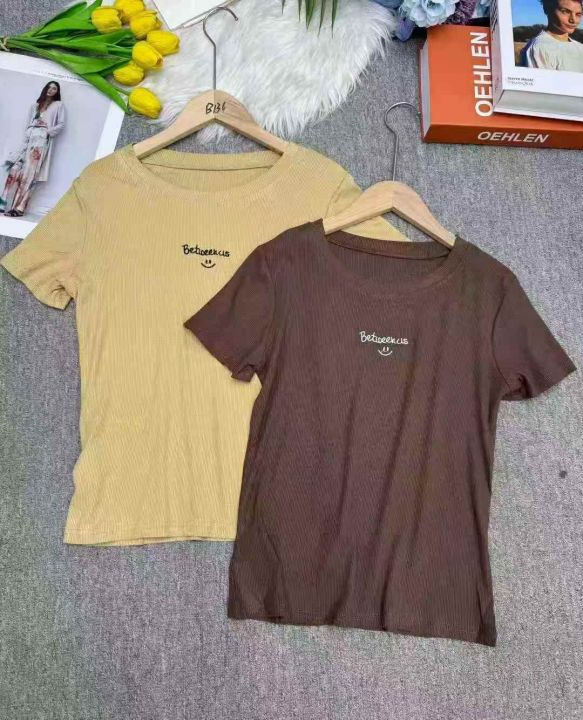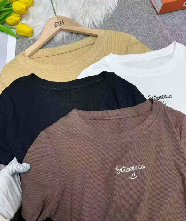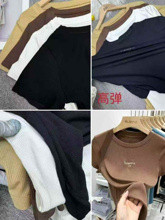 螺纹短袖t恤女夏时尚刺绣百搭修身辣妹上衣,独立包装,均码,整款四色,数量200件,大货黑白为主,高弹,货号114#14