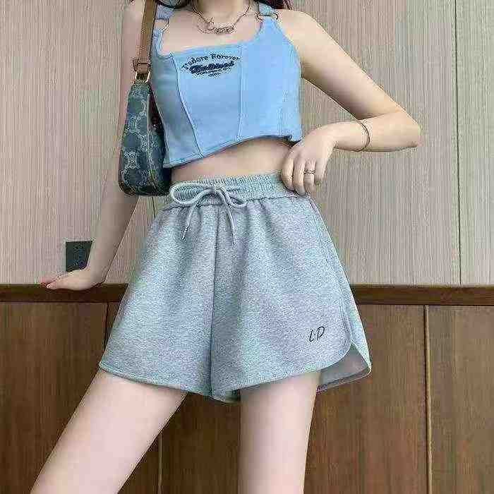 夏季新品休闲时尚百搭宽松显瘦抽绳高腰运动棉短裤,独...