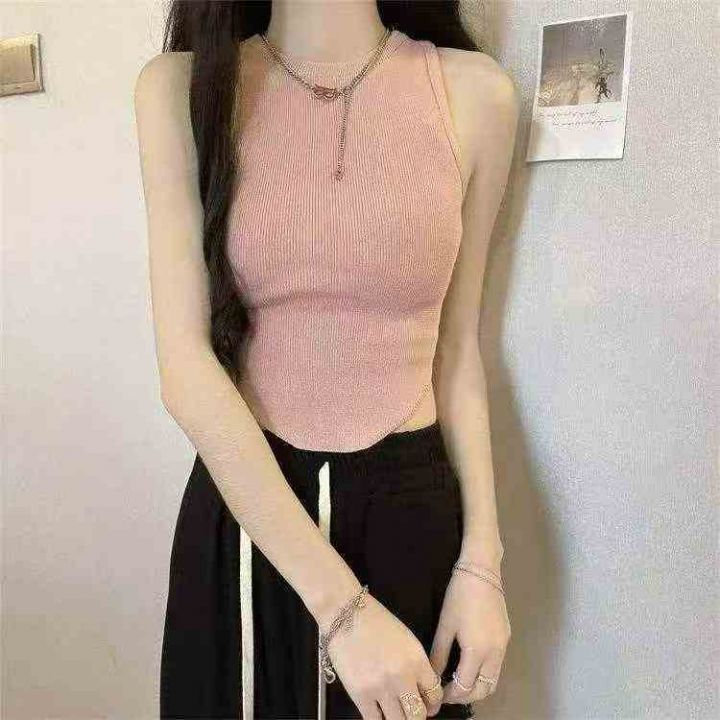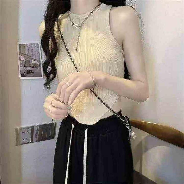 夏季新款不规则圆领弹力修身韩版百搭辣妹针织无袖背心...