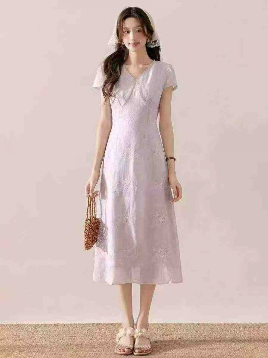 4300件新款夏季收腰修身长款连衣裙,工艺绣花,单款单色,独立包装,码数M-L,版型非常正,凸显身材!