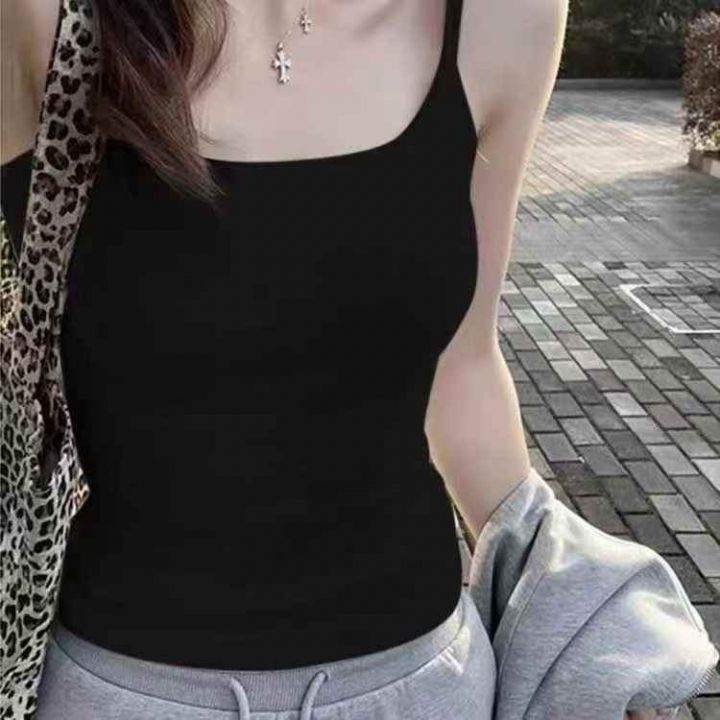 带胸垫纯色小吊带背心女夏纯欲少女外穿内搭修身美背打底无袖上衣 码数1-8码...