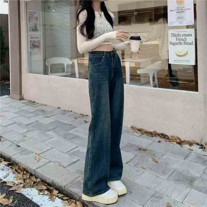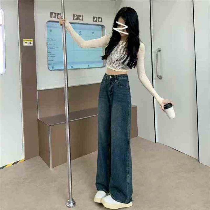 款号73 1 #牛仔裤直筒宽松春秋新款垂感阔腿裤舒适显瘦拖地裤,独立包装,S ...