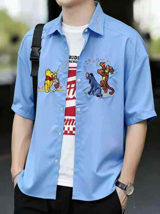 5.8元,大码潮流短袖衬衫,设计感刺绣工艺,男女同款...