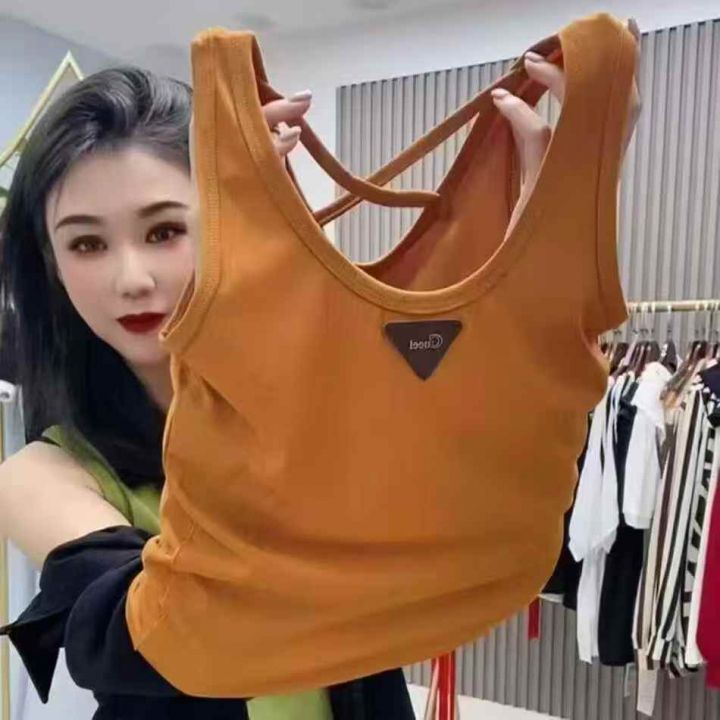 800件纯欲褶皱吊带背心女夏季带胸垫显瘦内搭打底外穿修身美背短款上衣 独...