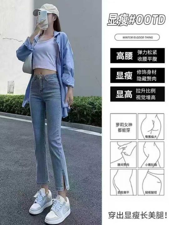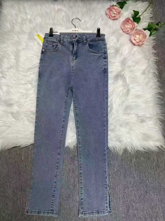 高腰小个子薄款弹力开叉直筒牛仔裤女设计感烟管裤560件,独立包装带吊牌,尺码S~5XL货品干净整洁,全清福利价9.9元