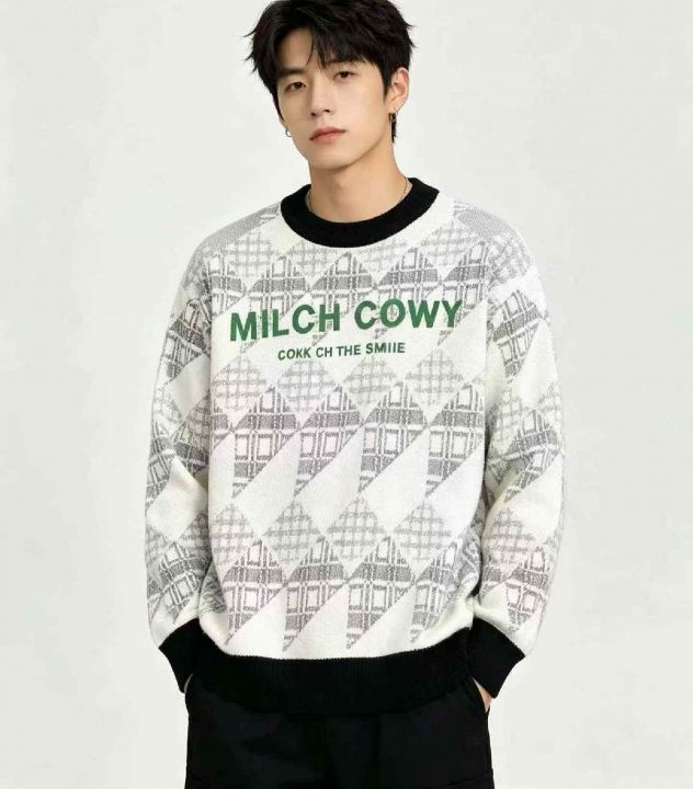 秋冬新款欧货字母提花加厚时尚个性男女同款圆领套头毛衣,独立包装,均码面...