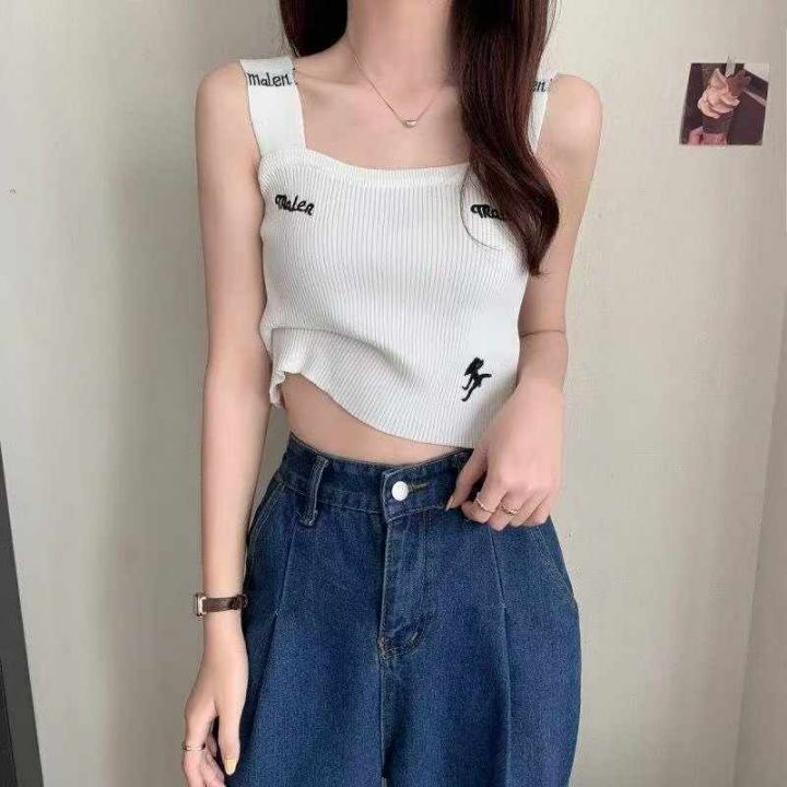 夏季新款网红字母刺绣针织吊带背心,独立包装,均码面料柔软舒适弹力大,2...