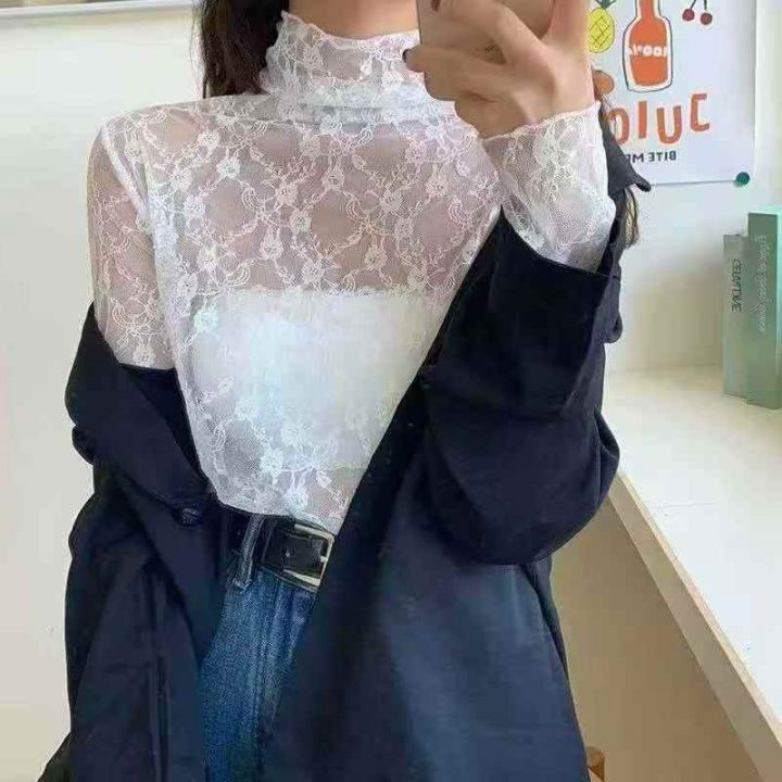 1300件半高领木耳边蕾丝打底衫女玫瑰花法式网纱内搭别致叠穿透视上衣 独立包装 均码 3.9清 分货加一