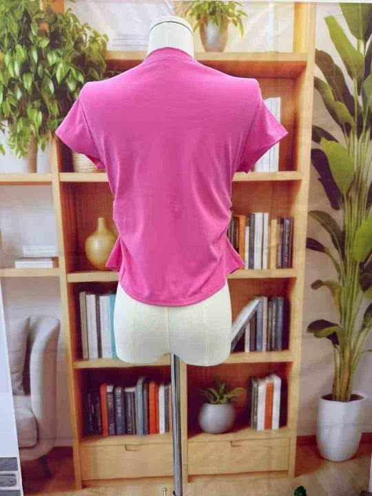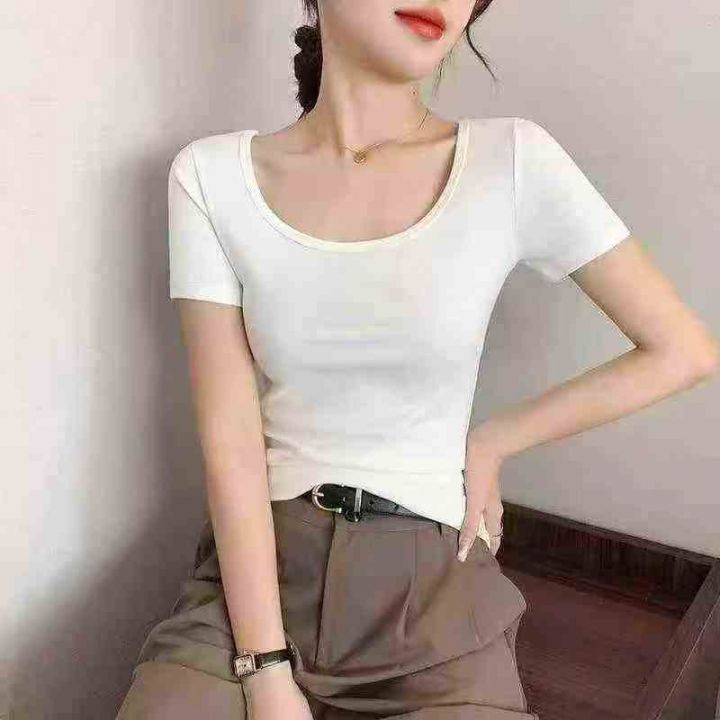 清3.8分货➕0.5玫红色辣妹短袖t恤女夏设计感小众套头体恤纯欲紧身显瘦上衣...