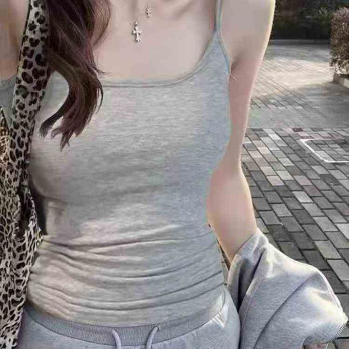 带胸垫纯色小吊带背心女夏纯欲少女外穿内搭修身美背打底无袖上衣 码数1-8码...