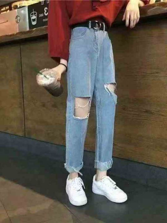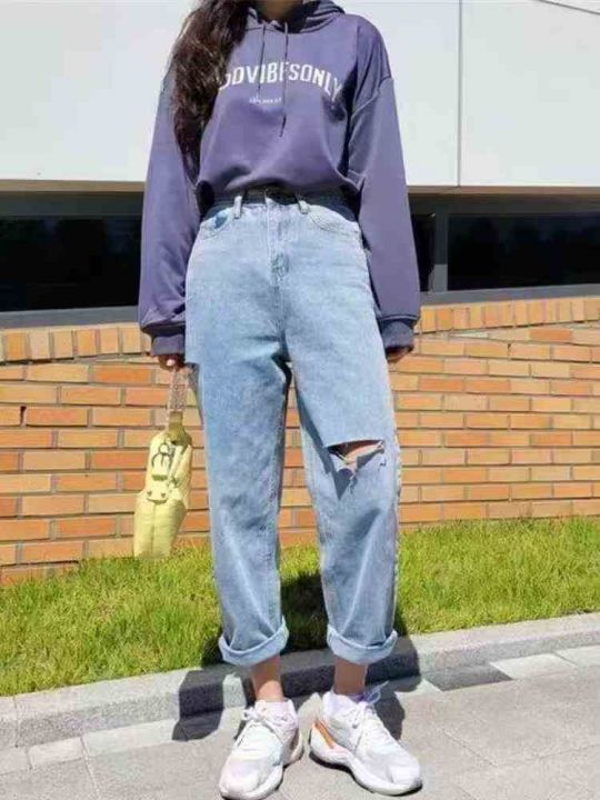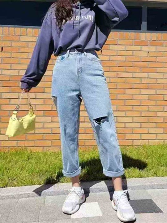 牛仔裤女韩国chic小众时尚百搭直筒版型高腰修身显瘦气质破洞裤280件,独立包装带吊牌,尺码S~5XL,全清福利价8.8元