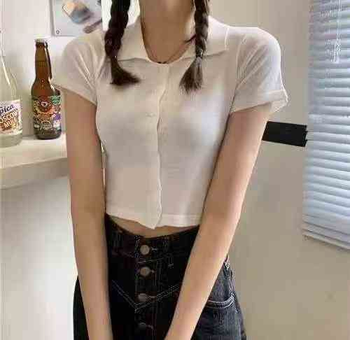 棉质辣妹短袖55件5.9,面料舒适透气,有弹力,POLO领,纽扣设计,码数1至4...