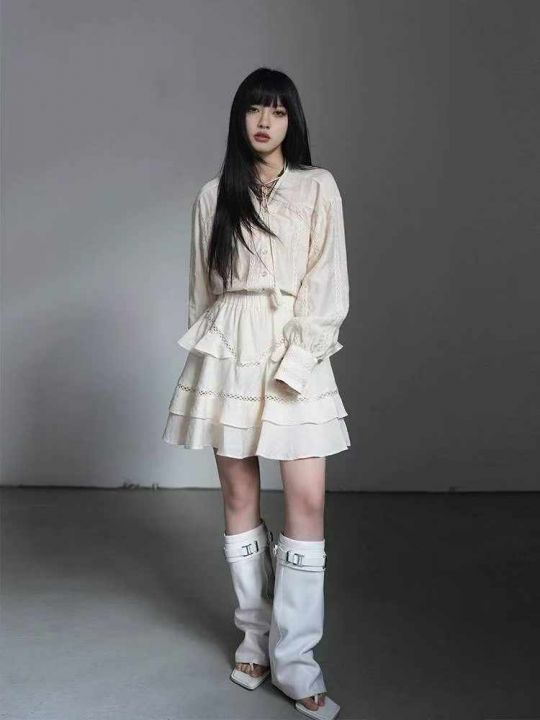 夏季新款法式高级感气质时尚棉绸长袖衬衣+棉绸短裤裙...
