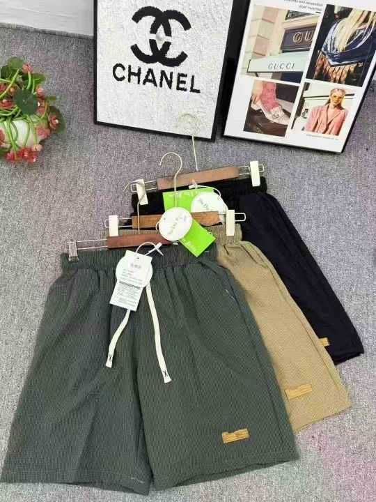 泡泡纱短裤男夏季潮牌美式休闲五分裤宽松裤子,码数M-3XL,数量1032件,独立包装带吊牌,货品干净漂亮。整款3个颜色。