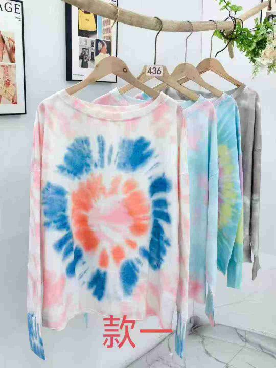 外贸扎染薄款女装卫衣,清3.99单款多色,纯棉面料(...