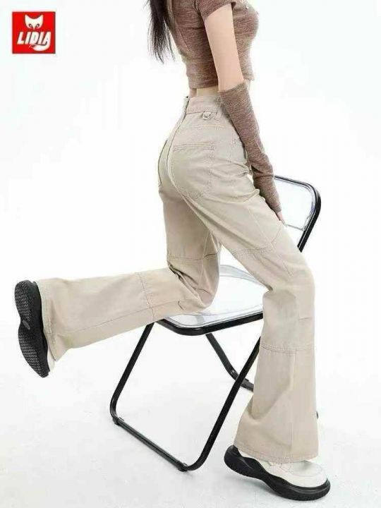 卡其色喇叭裤工装裤高级感美式阔腿拖地微喇女牛仔裤,...