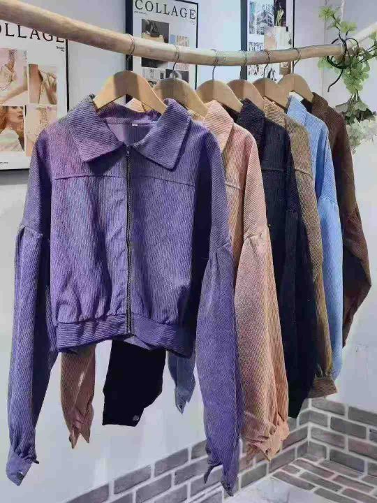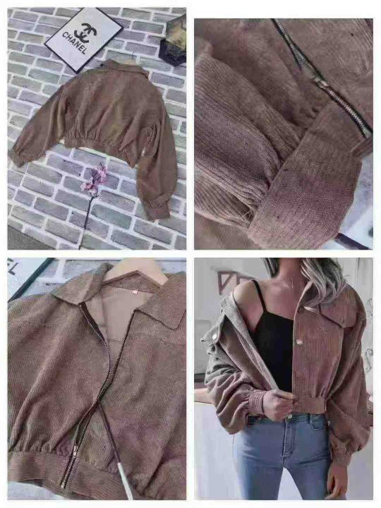B-55-C135,码数S-2XL,数量310件左右,备注:黑色多,辣妹灯芯绒外套,单款多色,全部独立包装